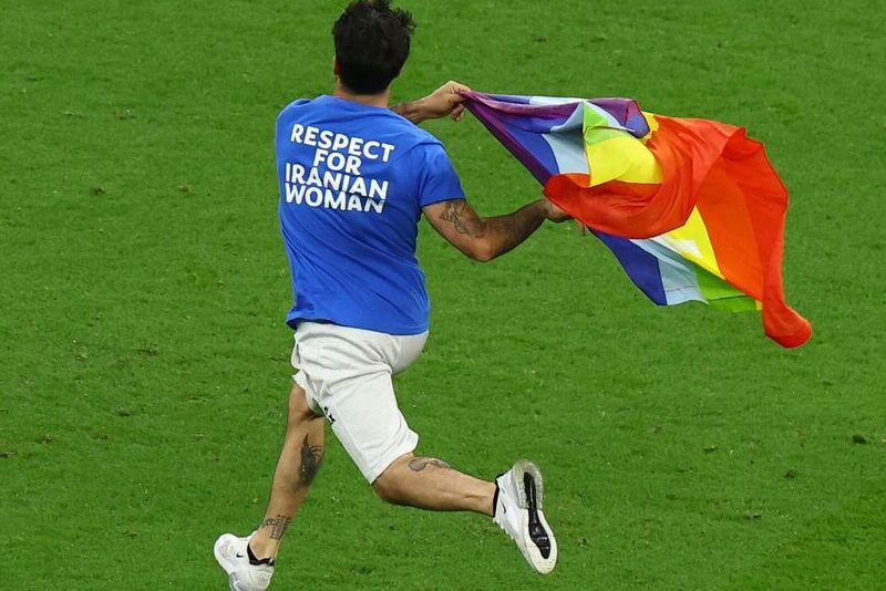 Mientras se disputaba el partido entre Portugal y Uruguay, un manifestante saltó a la cancha con una bandera arcoíris, la cual representa a la comunidad LGTBIQ+. Además tenia una camiseta con doble mensaje de protesta. De inmediato el aficionado fue capturado por personal de seguridad y retirado del campo de juego.