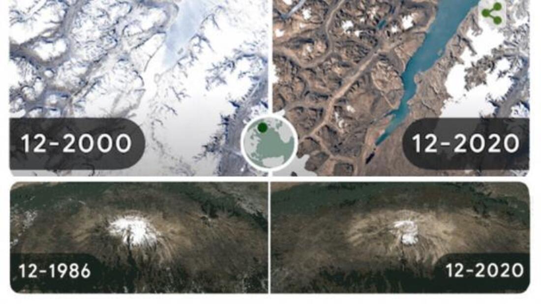 -Monte Kilimanjaro | Tanzania, África. con la disminución de glaciares en la cima del monte, en imágenes tomadas cada diciembre anualmente desde 1986 hasta 2020.