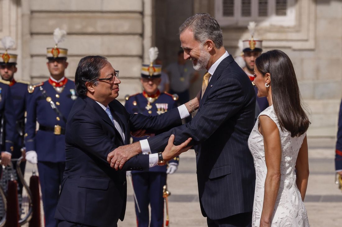 Los reyes de España, Felipe VI y Letizia, brindaron este miércoles la bienvenida oficial al presidente, Gustavo Petro, en el Palacio Real de Madrid, con motivo de su primera visita de Estado a España.