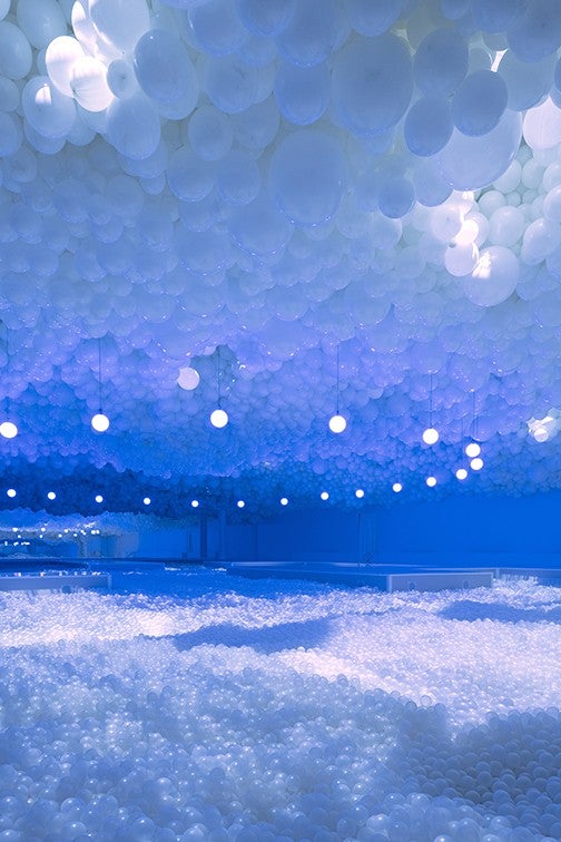 Una de las obras más impactantes es Hypercosmo, una piscina de pelotas gigante del colectivo artístico Hyperstudio, que ofrece una visión armoniosa e imaginativa de los vínculos contradictorios entre la naturaleza y las nuevas tecnologías con el uso de proyecciones, sonidos y movimientos de distintos elementos.
