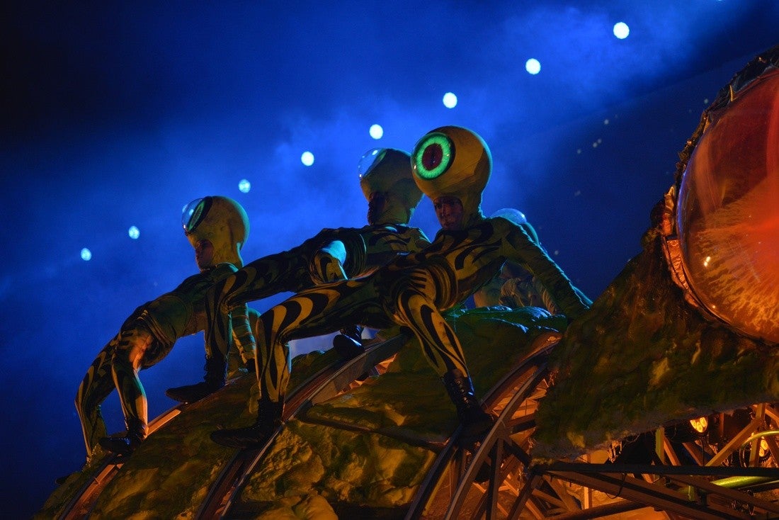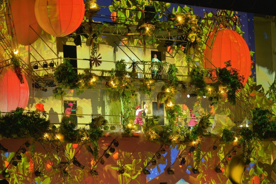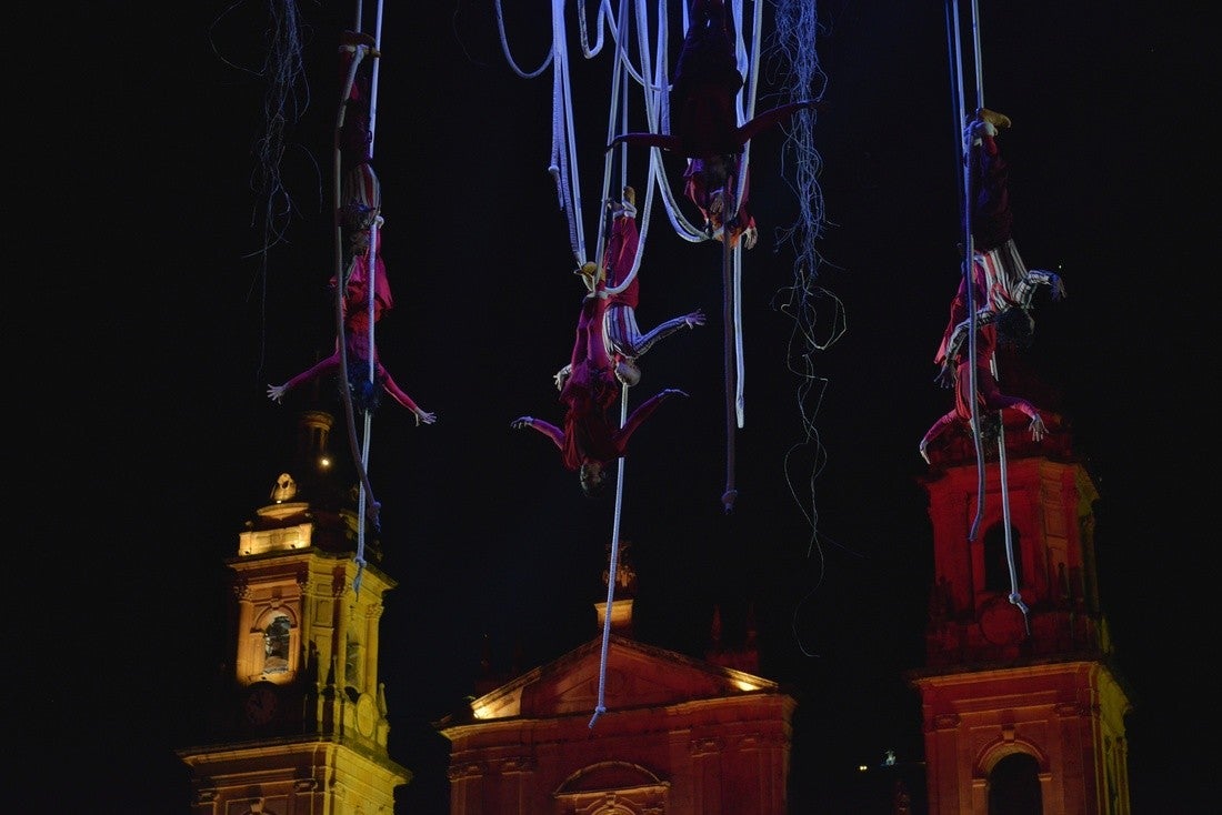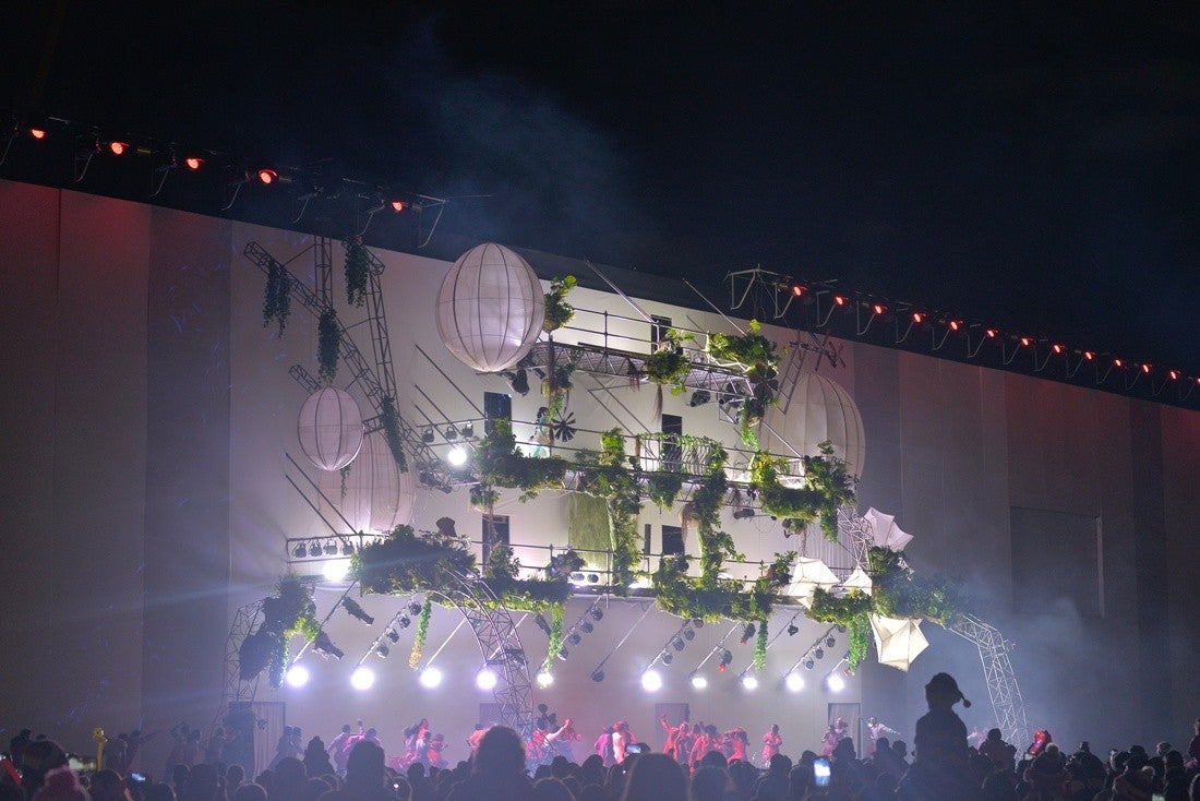 «El Árbol de la Abundancia», así ha sido bautizada esta impresionante puesta en escena con decenas de artistas, músicos y acróbatas dispuestos a entregar un mensaje de cuidado de la madre naturaleza, la relación del hombre y la tierra que da los frutos para sobrevivir, mensajes codificados en canciones y danza. Esta es una instalación de más de 70 mts. en donde asistimos a un delirante y colorido viaje sonoro y visual con proyecciones láser que se funden con los cuerpos de los artistas que realizan su performance sobre la tarima, los balcones o suspendidos en el aire por una grúa.
