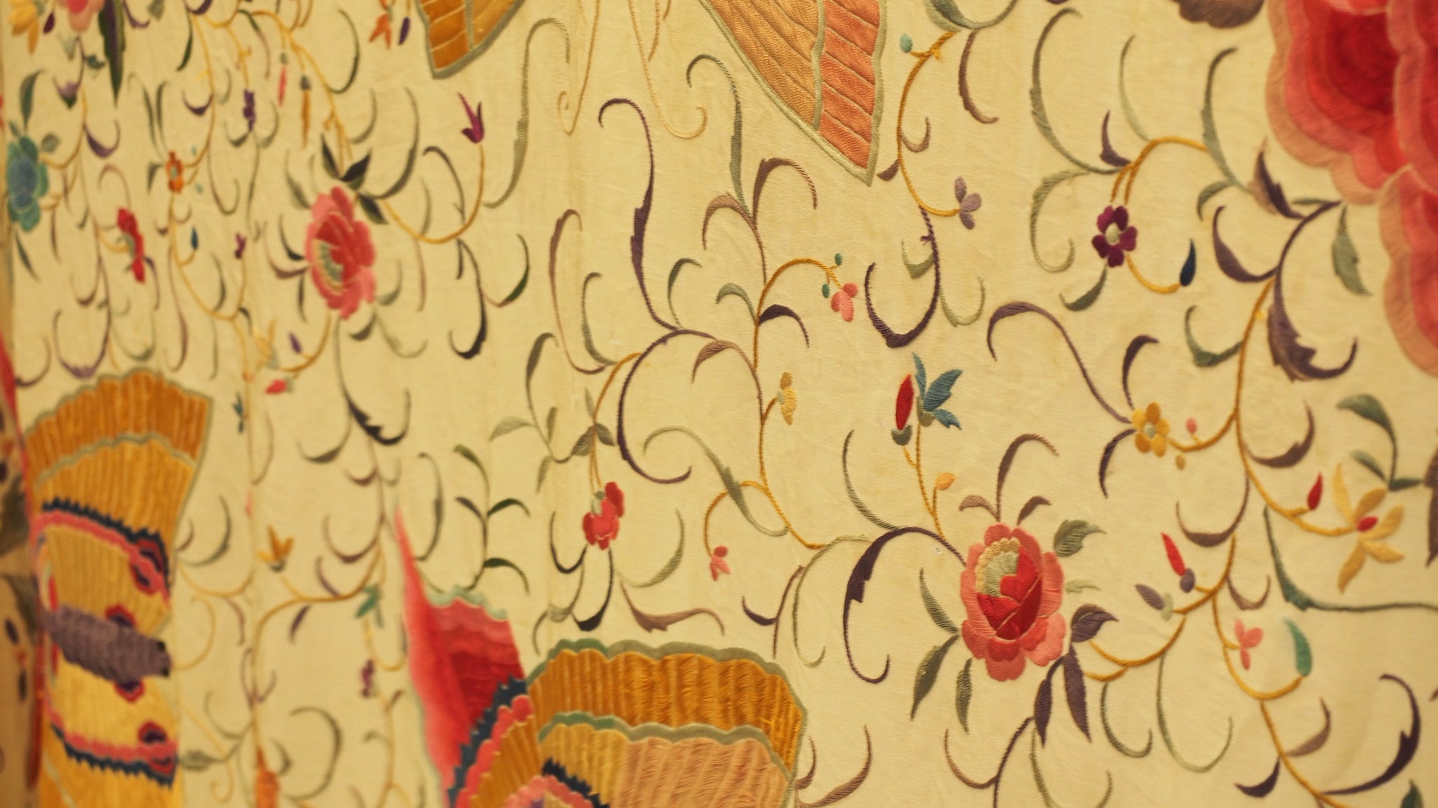 La segunda sala contiene una cuidada selección de mantones de manilaprovenientes de distintas colecciones privadas y que muestran diversos tipos de mantón: cuarterones, imperio, isabelinos, cantoneses, modernistas, de cigarreras… todos tienen entre 100 y 180 años.