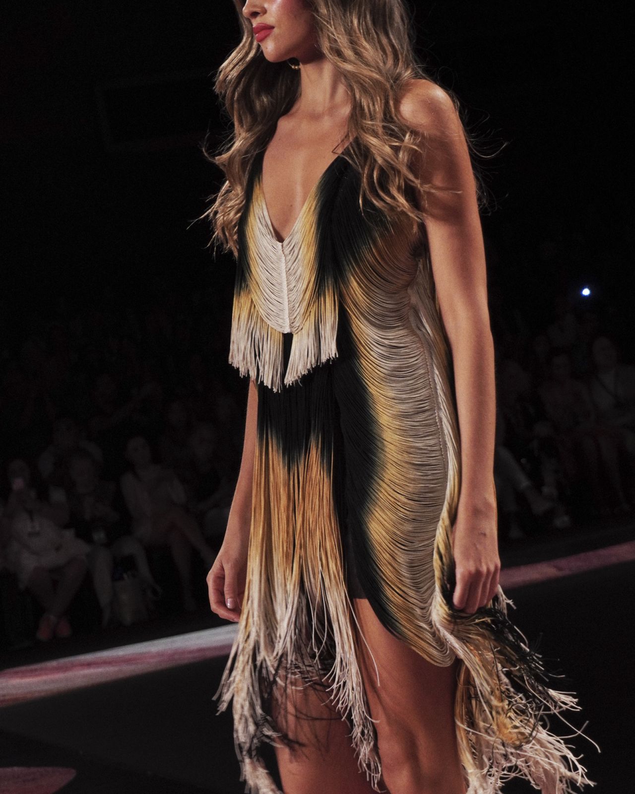 Los flecos son uno de los elementos principales de la colección. También vimos siluetas sueltas con acentos en la cintura, faldas midi con movimiento y estampados florales minimalistas en donde al sonar de la Isla bonita, veía representada nuestra esencia y cultura latina.