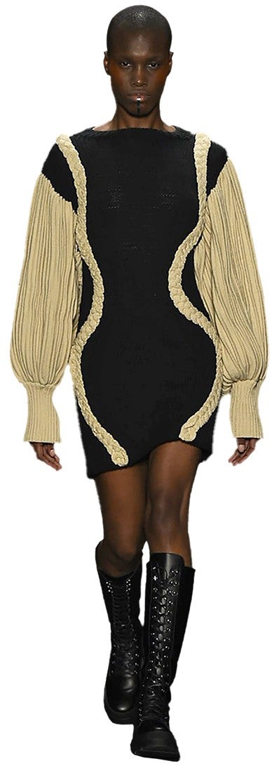 Graduado totalmente del quilt-it trend o acolchados como una tendencia on-the-rise de fall-winter, la chaqueta de proporciones magnificadas junto a trabajo textil muy especial se convierte en el little black dress de este diseñador, en donde de la mano de los artesanos de Cundinamarca y mujeres bordadoras de Barbosa, Santander. Bogotá se transforma en el planeta Cubel y allí la armadura tradicional tiene proporciones oversized, intervenciones en knitwear, tonos cobrizos e intervención artesanal que hacen del ADN estético de este imaginario, uno imposible de olvidar.