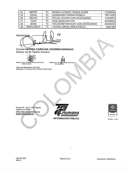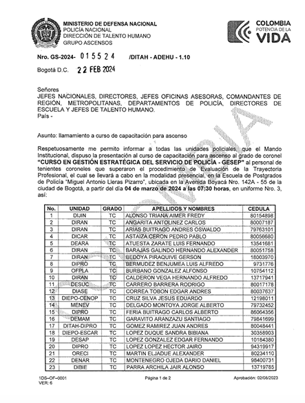 El coronel Carlos Feria, quien actualmente se desempeña como jefe de protección del presidente, ha sido convocado a un curso de ascenso a pesar de estar imputado desde noviembre pasado por presuntas irregularidades en el caso de Marelbys Meza, exniñera de Laura Sarabia, próxima directora del Dapre.