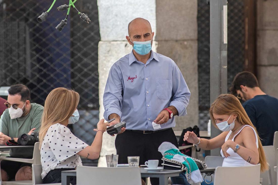 Las terrazas de Madrid han vuelto a ocupar las aceras, los meseros llevan puesto tapabocas, los menú se leen por código QR, no hay saleros, ni servilletas, ni ningún objeto de uso común en las mesas, salvo el gel hidroalcohólico que debe ser usado por los comensales como un ritual inevitable antes de sentarse. La escena es igual en diferentes sitios: tiendas de ropa, bancos, cafés, supermercados, iglesias, museos, librerías y gimnasios. Ahora, estos espacios se han dotado de dispensadores de gel antibacterial y el uso de tapabocas como medida de prevención e higiene es obligatorio para las personas de seis años en adelante, siempre y cuando no se pueda respetar la distancia de seguridad de 1,5 metros. La multa es de 100 euros para quien no cumpla la norma.
