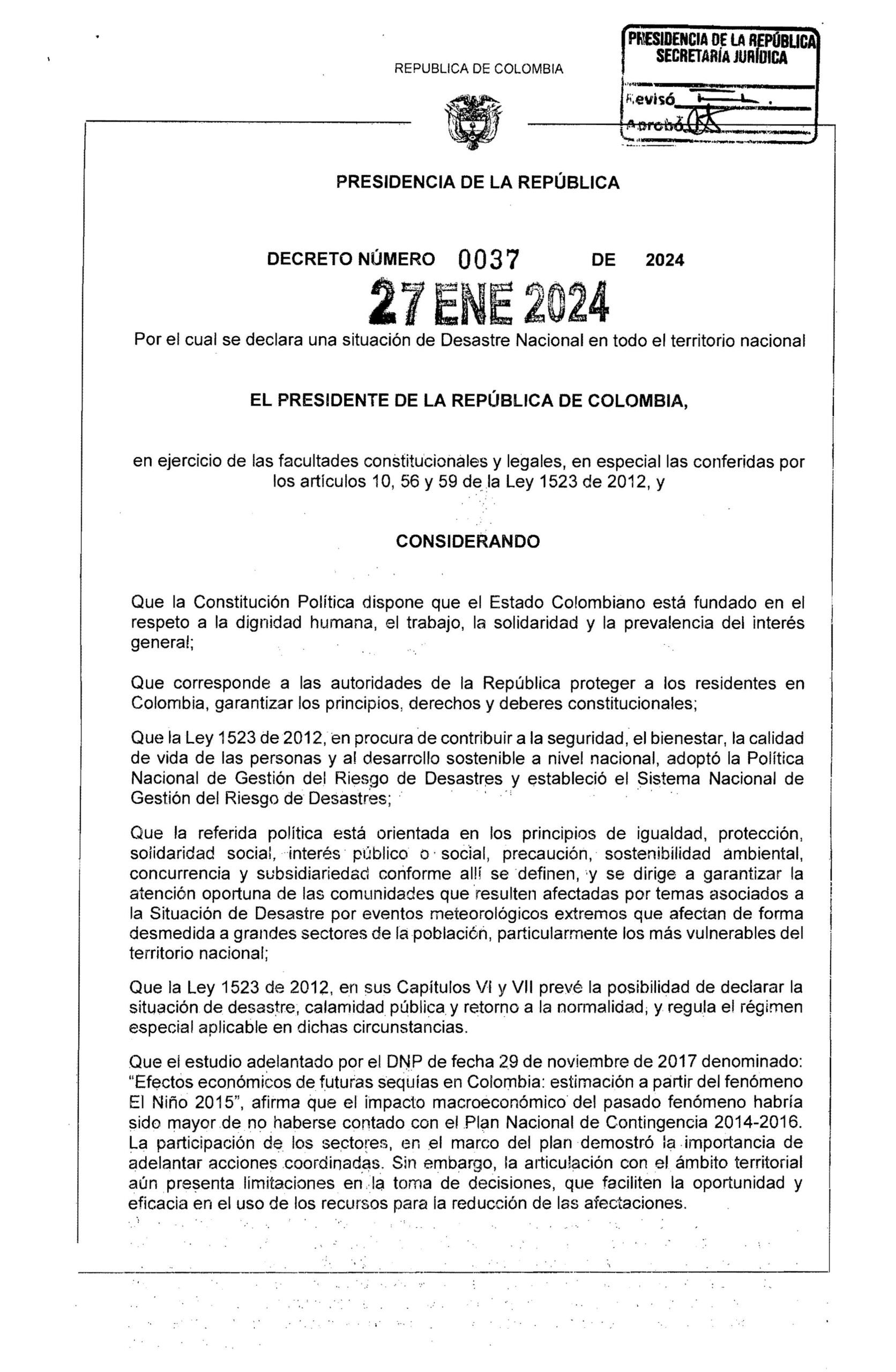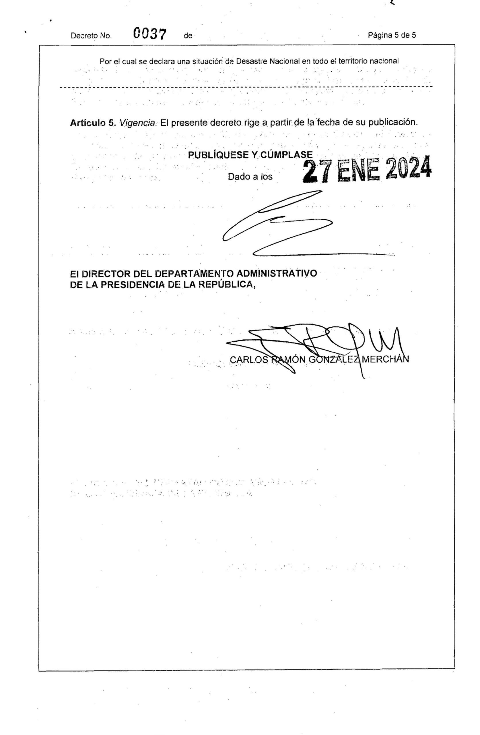 El Gobierno de Gustavo Petro emitió este domingo el decreto 0037 de 2024 que oficializa la declaración de situación de desastre nacional.