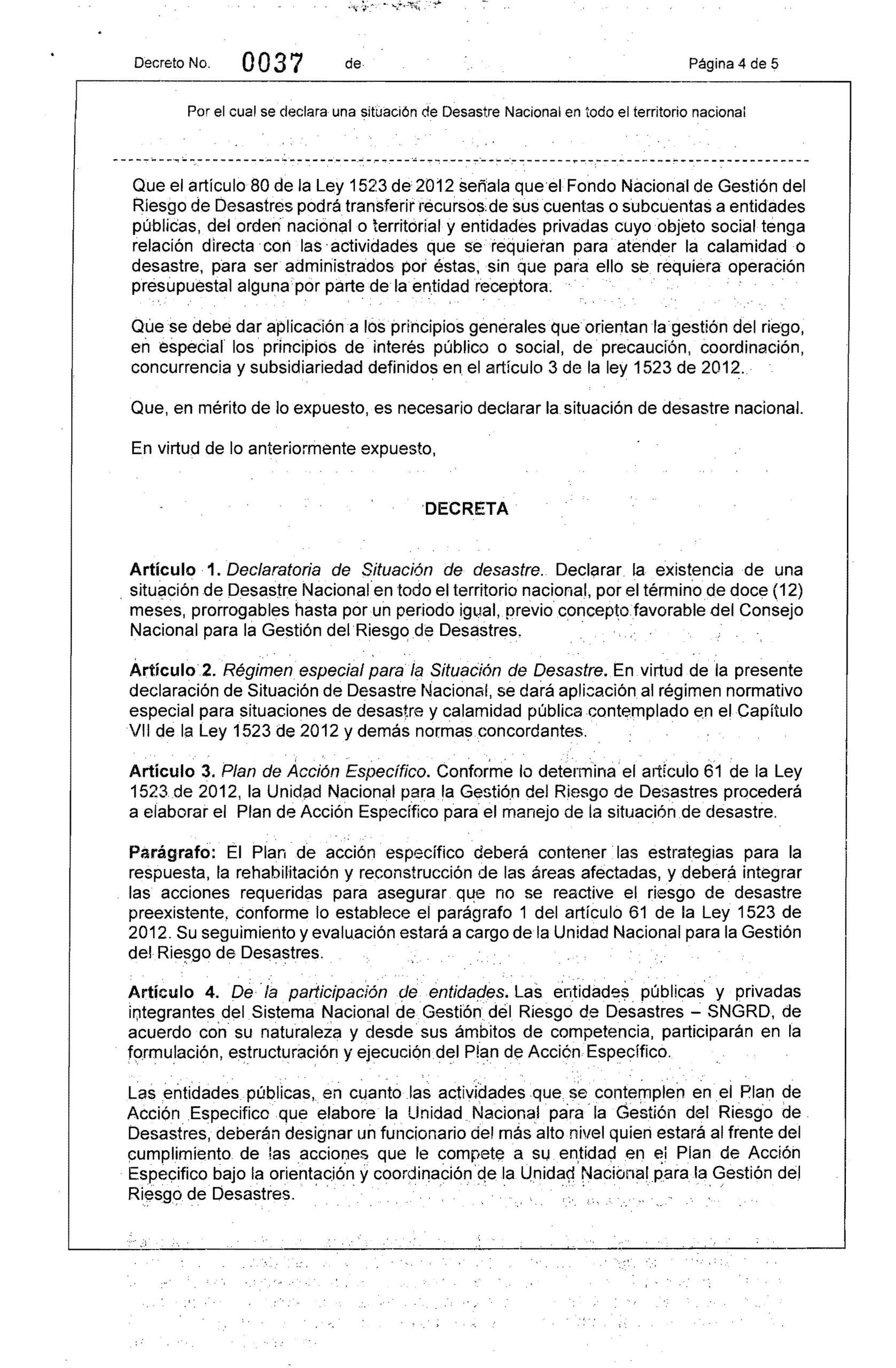 En el decreto se aclara que el Consejo Nacional para la Gestión del Riesgo, en el ejercicio de sus funciones, “consideró que se cumplen con los criterios establecidos en el artículo 59 de la Ley 1523 de 2012, por lo que emitió concepto previo favorable para la declaratoria de la situación de desastre nacional”.
