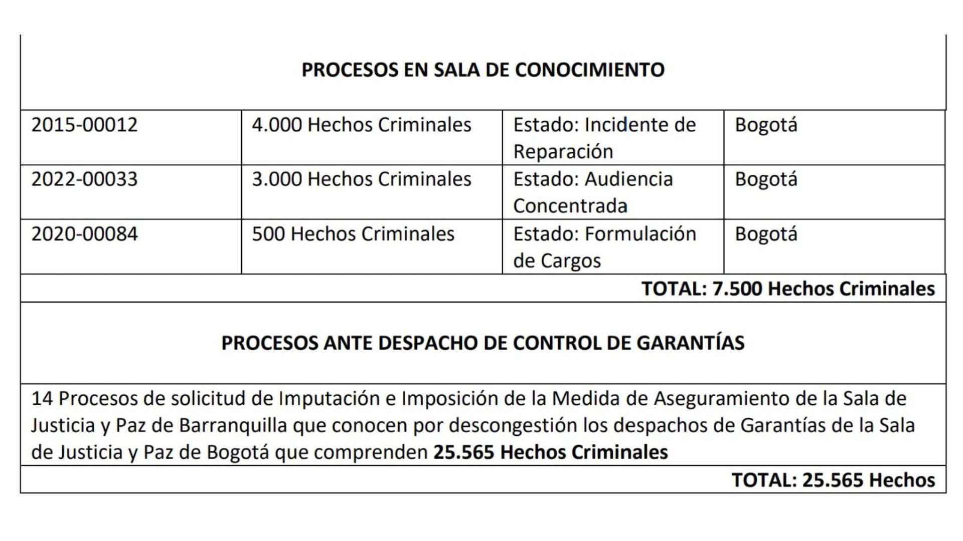 Mancuso tiene 14 procesos de solicitud de imputación e imposición de la medida de aseguramiento de la Sala de Justicia y Paz de Barranquilla, que conocen por descongestión los despachos de Garantías de la Sala de Justicia y Paz de Bogotá que comprenden 25.565 hechos criminales.
