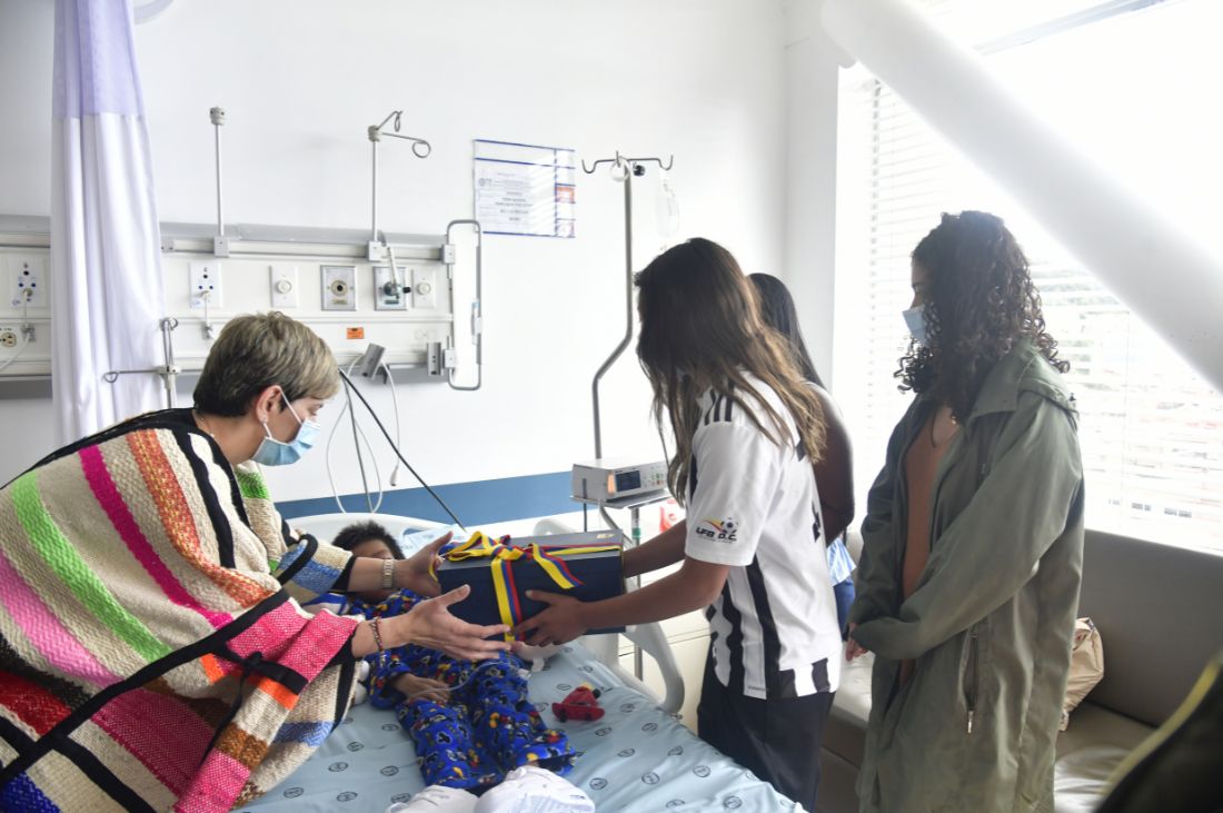 Foto: Presidencia en medio de la visita de Gustavo Petro y Verónica Alcocer a los niños.
